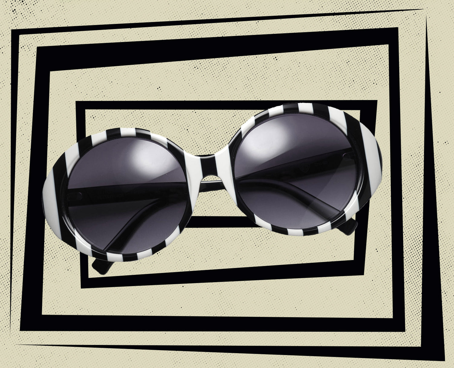 SHOPThese striped sunnies are inspired by the pair worn by Delia Deetz in "Beetlejuice Beetlejuice". Eccentric, memorable and perfect for fans of this classic, creepy tale!